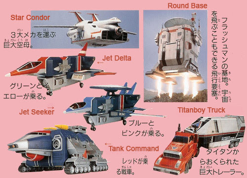 -Gabungan Tank Command,Jet Seeker dan Jet Delta untuk membentuk robot Flash King